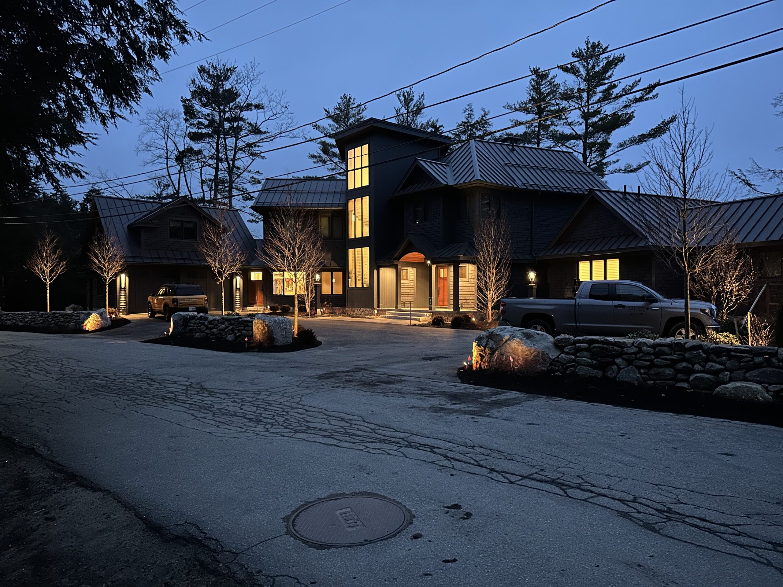 Working closely with the clients, architect, and builder, the db team developed a comprehensive site plan integrating waterfront access, circulation, and outdoor living spaces. The design process extended through full permitting with NHDES, including shoreland and wetland approvals, as well as local erosion control and ground disturbance permits.